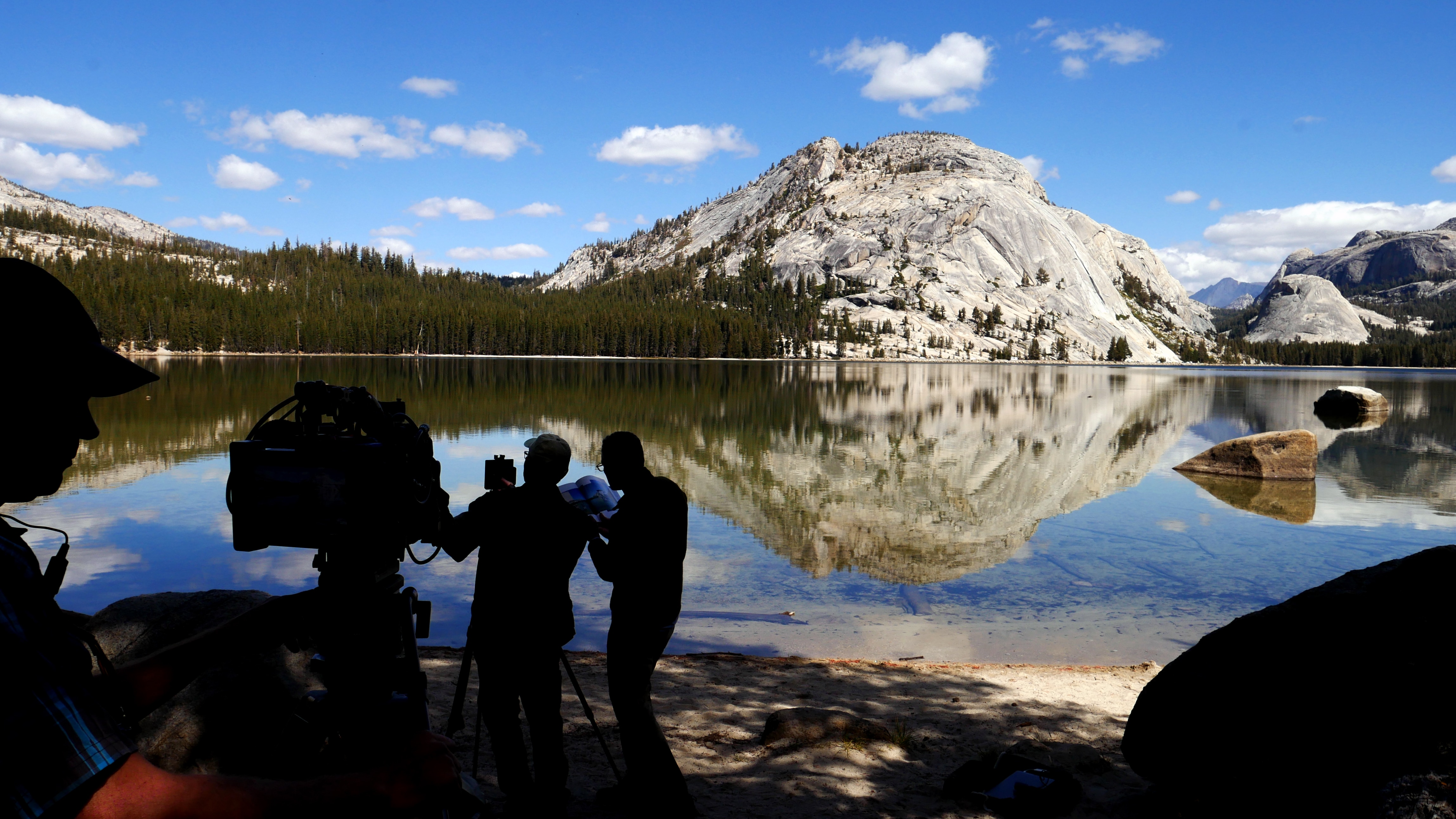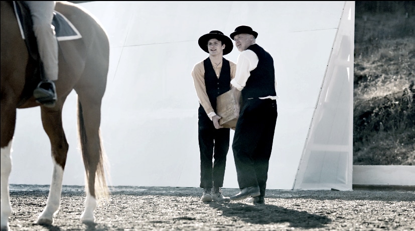 Success! We have completed an exhausting two weeks of production. We had a great time retracing Muybridge’s steps in Yosemite with the photographers Byron Wolfe and Mark Klett. Somehow, we survived our big recreation of the Sallie Gardner galloping horse sequence. Thanks to all who worked to pull this off: Serginho Roosblad, Tim Macmillan, Becky Pederson, John Behrens, Adriano Bravo, Radiant Images, Rooster Productions, Ruth Bley, Heather Lake, Josh LaCanha, Luther Gerlach, Tracy Storer, Leo Shaffer, and more. Below are some production images.