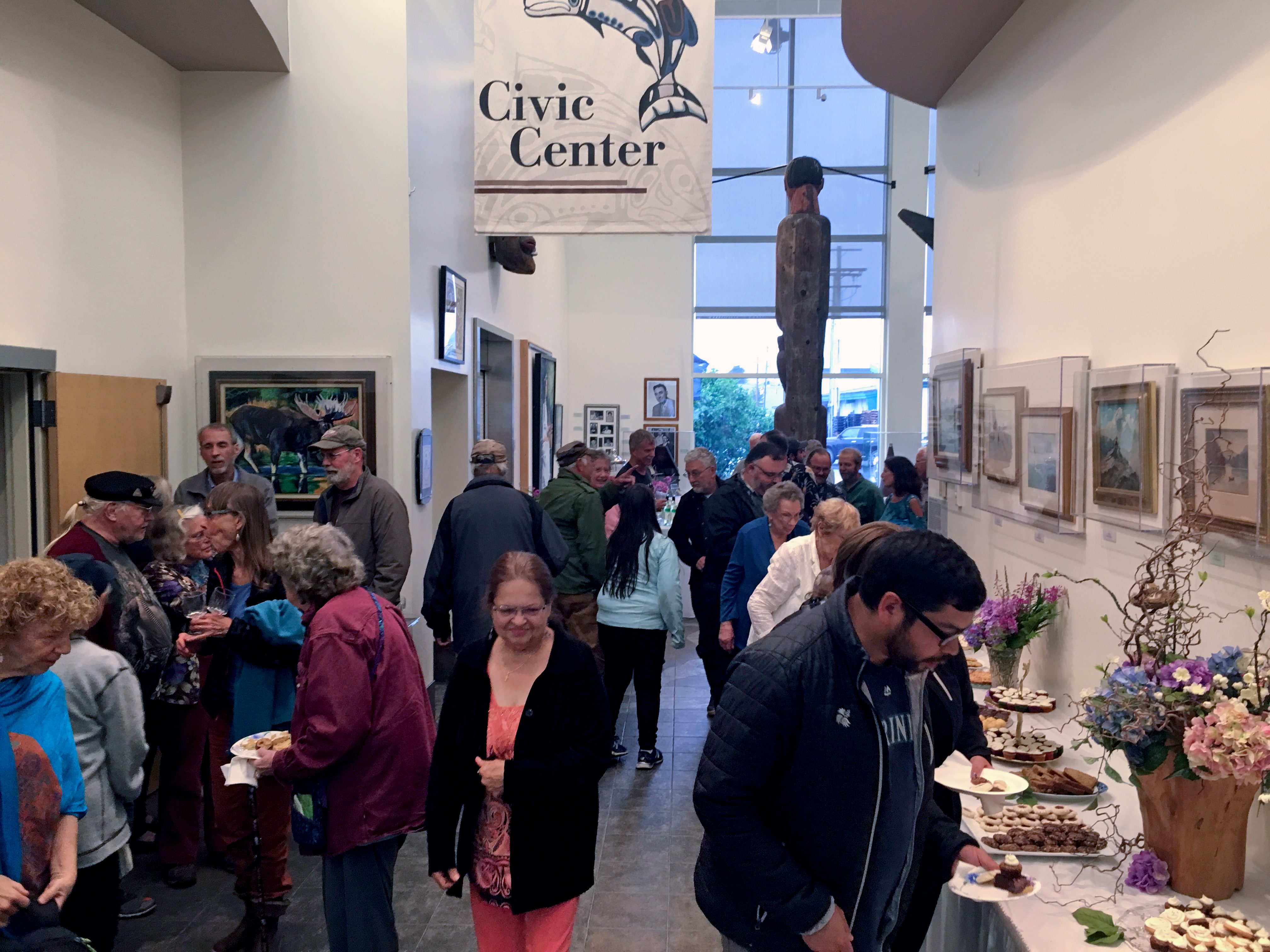 Muybridge in Alaska: 1868 opened in style tonight at the Nolan Center in Wrangell. A crowd of more than 100 people enjoyed drinks, hors d’oeuvres, and a special presentation by curator Marc Shaffer. Local Tlingit authority Virginia Oliver introduced the evening and provided her perspective on the Wrangell photographs. Special thanks to Cyni Crary and the Nolan Center for hosting the show and so much more. The exhibition will be mounted through August. This is the final stop, so the last chance to see the exhibition.