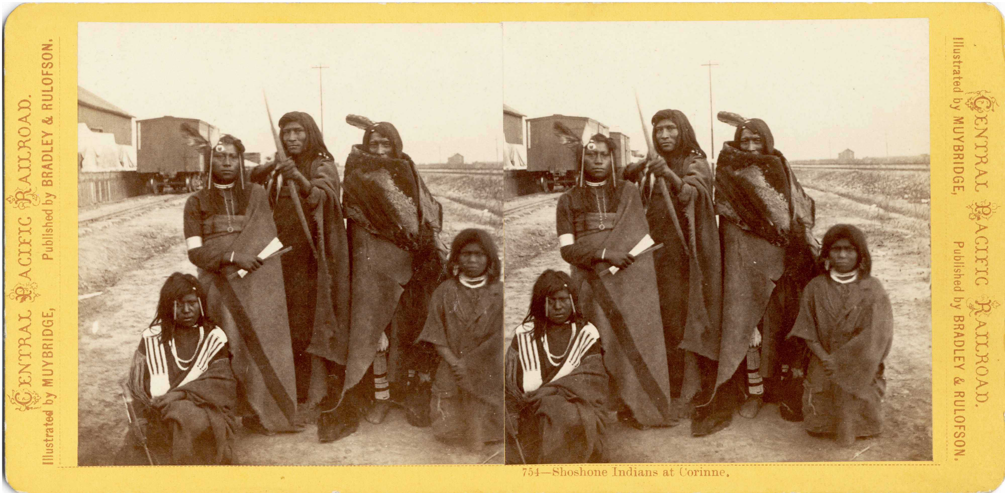 Today, Exposing Muybridge was accepted to the Sedona International Film Festival in Arizona. In honor of the Native peoples who lost their lands, and more, to the colonial expansion of the U.S., we post this photograph of Shoshone Indians in Corinne, Utah. Muybridge made this photograph, likely in 1873, while on commission for the Central Pacific Railroad—thus the titling on either side of the stereo view. While Muybridge left few signs of how he felt about Native Americans, and eagerly documented their displacement, his images of indigenous peoples, as compared to the work of other Anglo photographers of his and later eras, are unusually honest and respectful. Here, Muybridge departs from his typical aesthetic to frame his subjects staring directly towards the camera (and him). It is one of his most narrative views, bristling with tension. But what story is Muybridge telling? One of defiance, or defeat? Progress, or conquest?